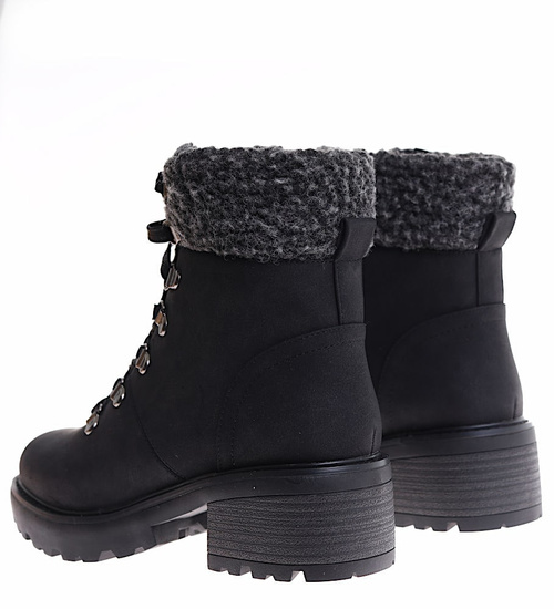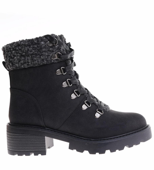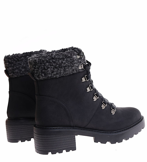 Czarne sznurowane botki z ociepleniem /F4-1 17103 G386/