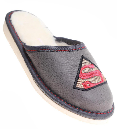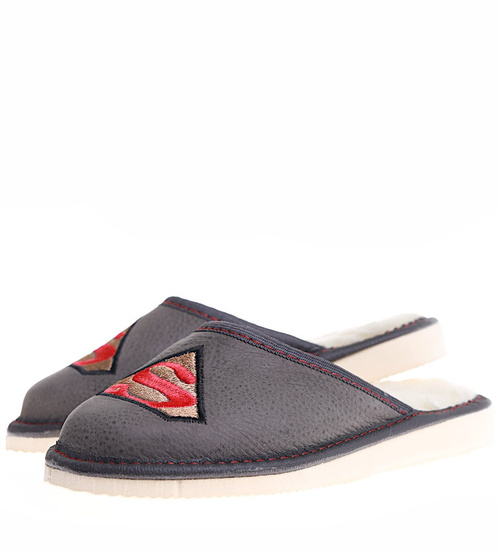 Kapcie chłopięce skórzane z wełną Super Men /D1-1 17110 S182/