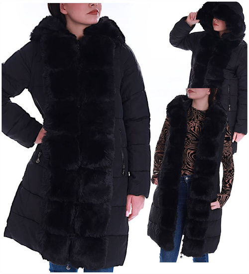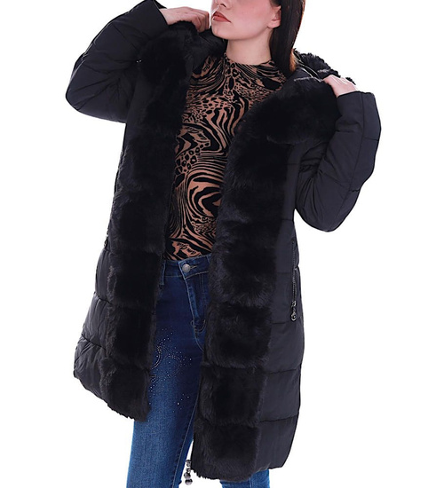 - Zaopatrzona w kaptur obszyty kożuszkiem.