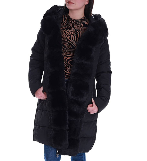 - Zimowa kurtka damska w klasycznym czarnym kolorze idealna na chłodne dni.