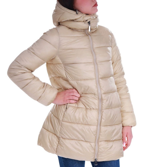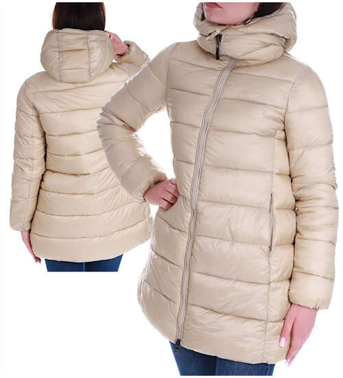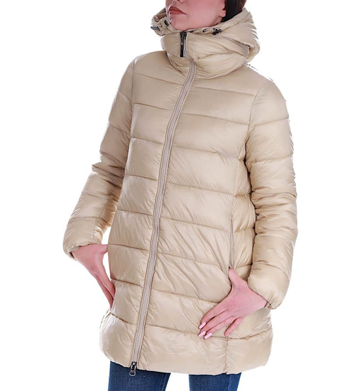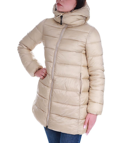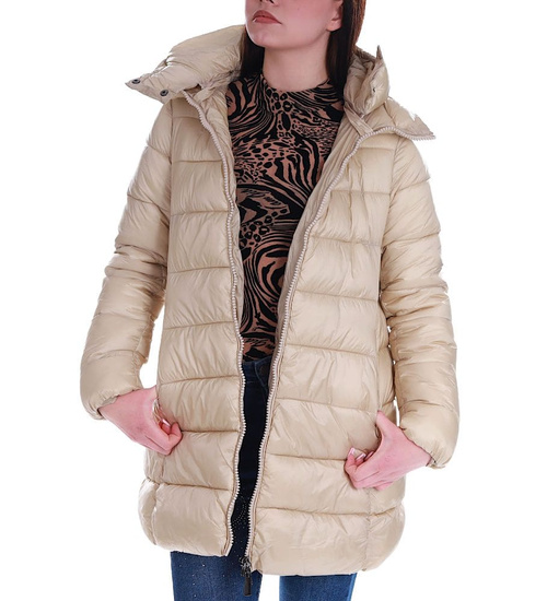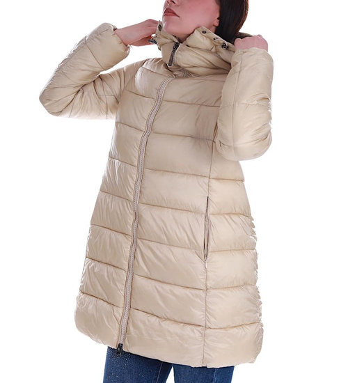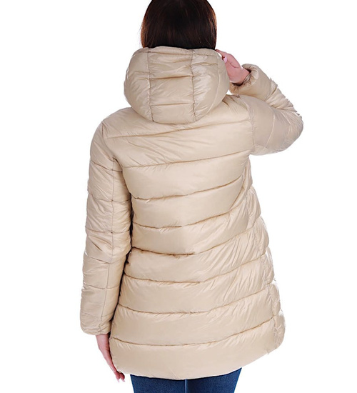 • Zimowa kurtka damska w modnym, beżowym kolorze.