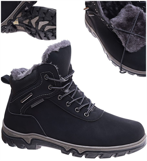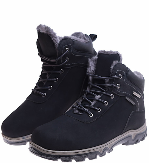 Zimowe czarne ocieplane buty trekkingowe /G12-1 17130 T488/