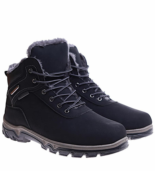 - Wysokie czarne męskie buty trekkingowe z solidnym ociepleniem.