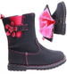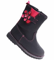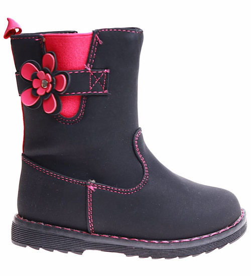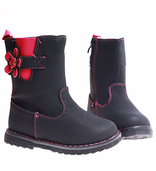 - Śliczne dziewczęce kozaki wykonane z materiału skóropodobnego w kolorze czarnym.