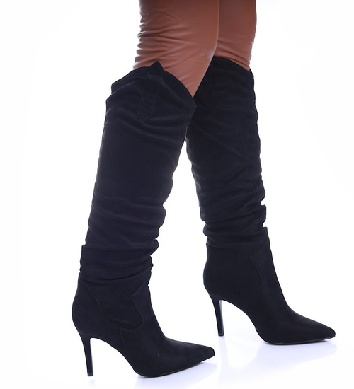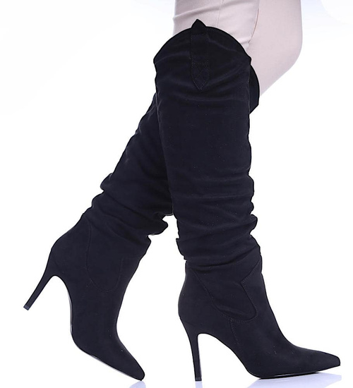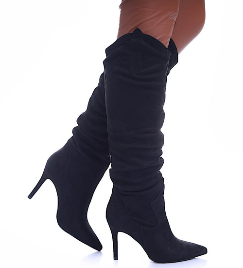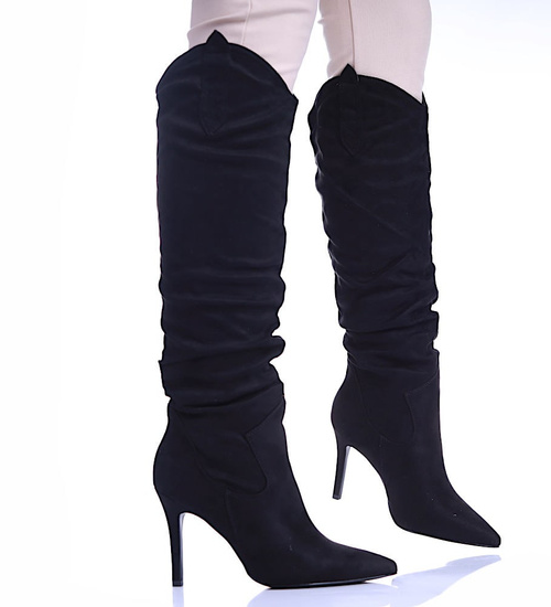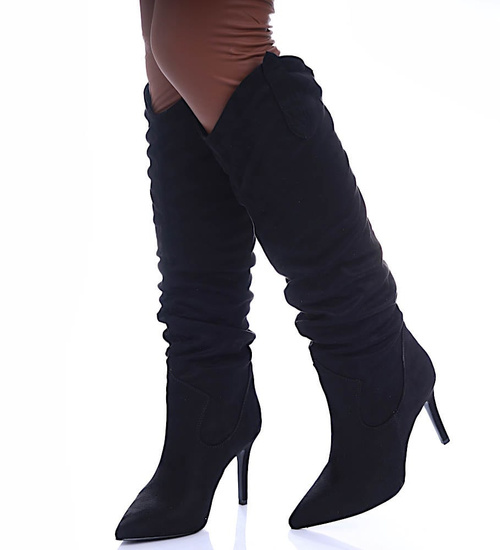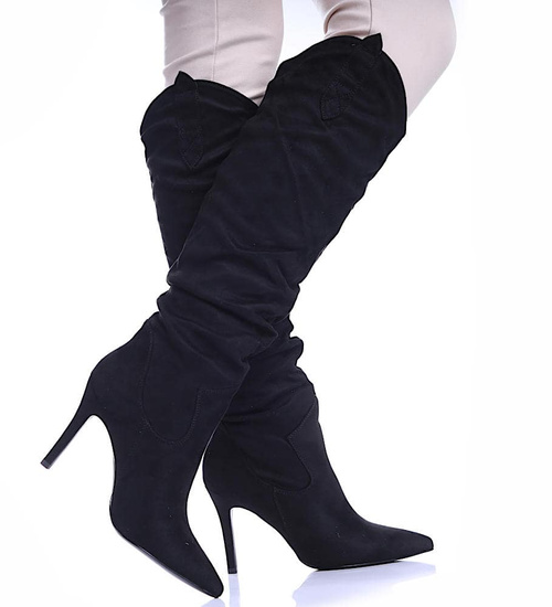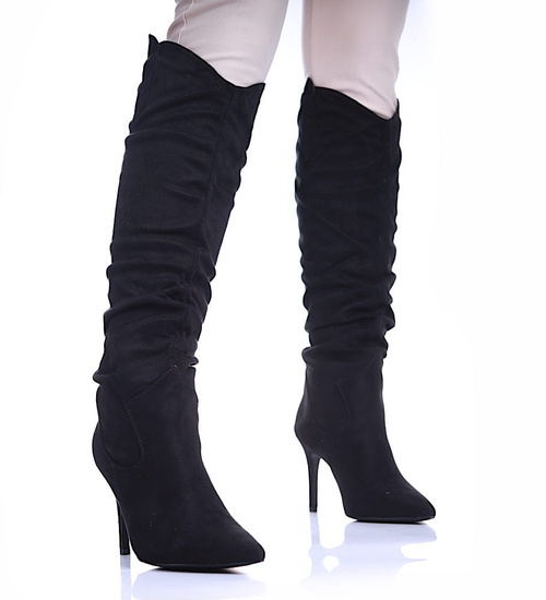 Klasyczne czarne kozaki na obcasie /C2-1 17145 G381/
