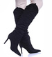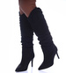- Czarne kozaki damskie postawione na smukłym obcasie w formie szpilki.