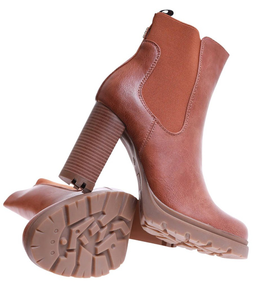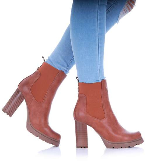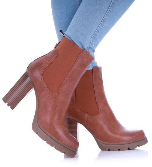 Klasyczne ocieplane brązowe botki na obcasie /F5-2 17155 G324/