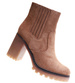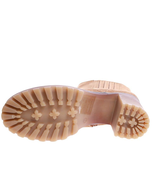 Karmelowe botki damskie na obcasie i platformie /F7-3 17160 G285/