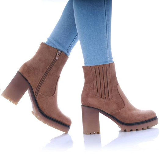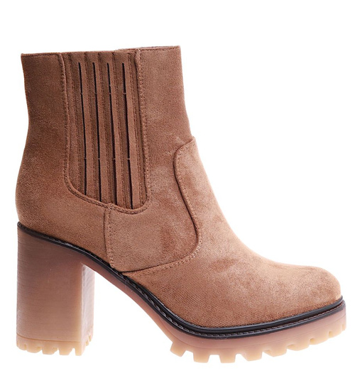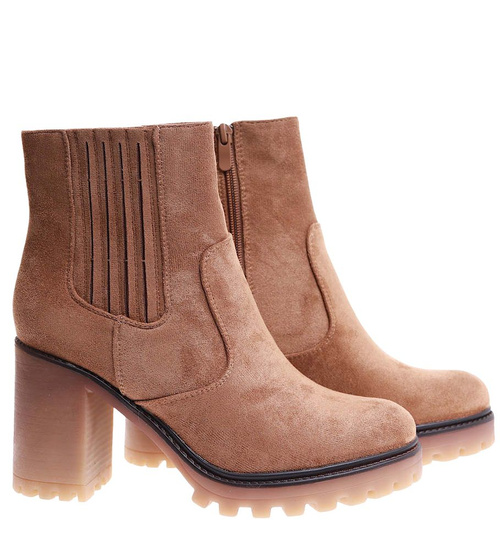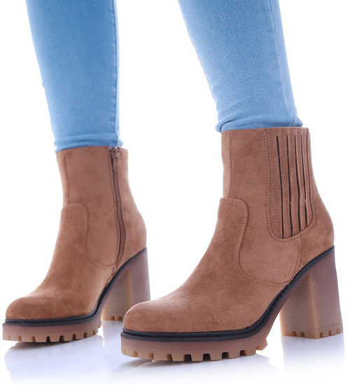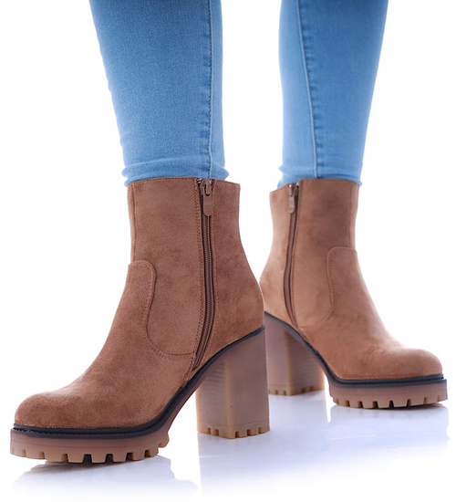 Karmelowe botki na obcasie