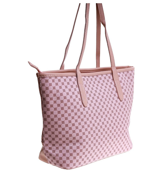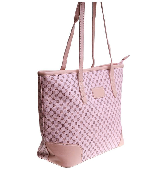 Postaw na wyjątkową torebkę w odcieniu różu, ozdobioną delikatnym jasno brązowym wzorem. To stylowy dodatek, który doda Twoim stylizacjom klasy i kobiecego wdzięku.