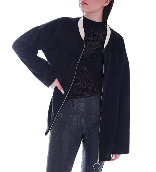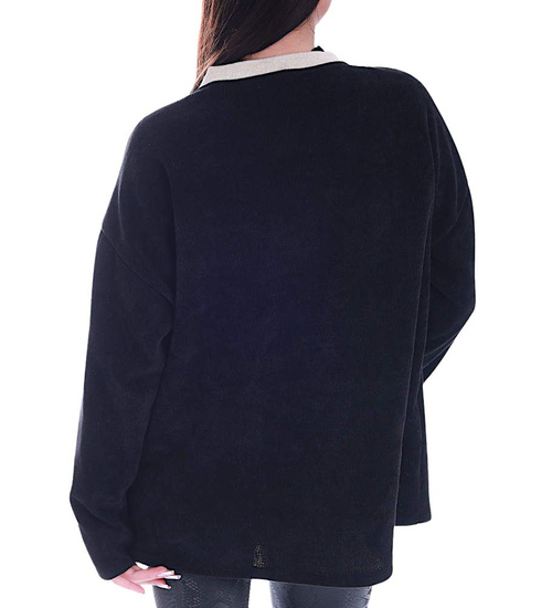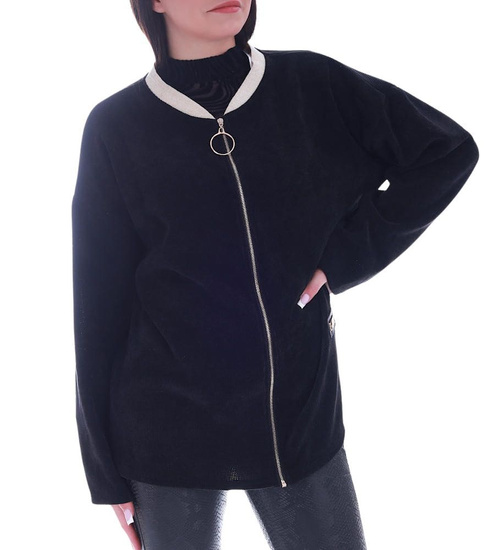 - Stylowa i funkcjonalna bluza damska w klasycznym czarnym kolorze to doskonały wybór na chłodniejsze dni.