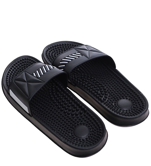 Męskie czarne klapki basenowe z białymi paskami – klasyka i wygoda