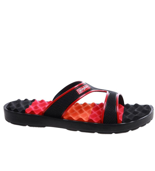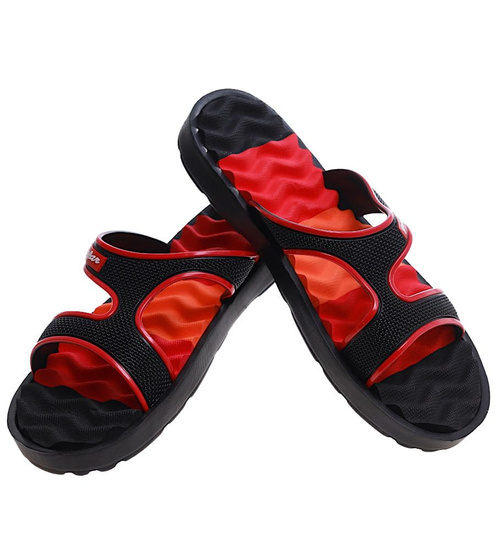 Basenowe klapki męskie Czarno czerwone /E6-1 17193 T087/
