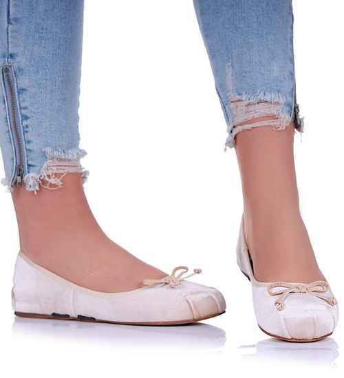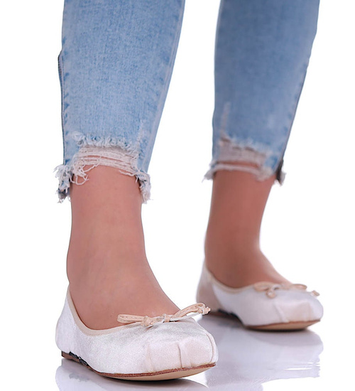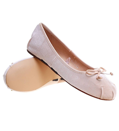 Zamszowe beżowe balerinki z paseczkami /A8-2 13330 T035 +H2/