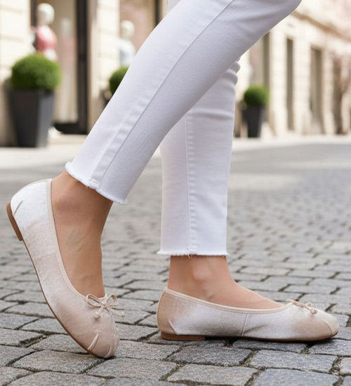 Zamszowe balerinki w beżowym kolorze – styl vintage na wiosnę i lato
