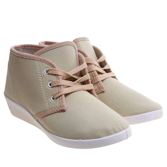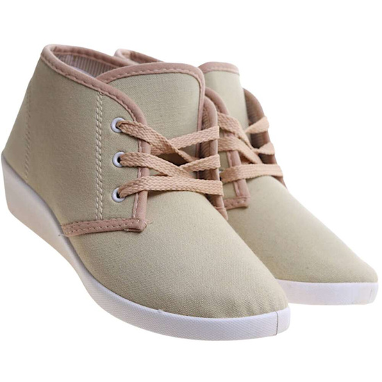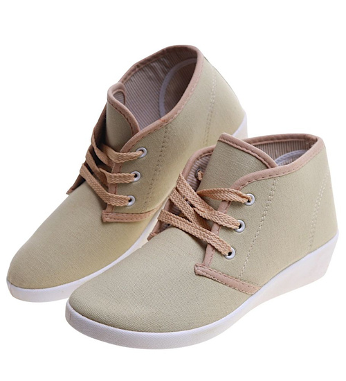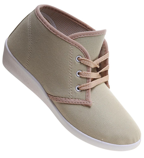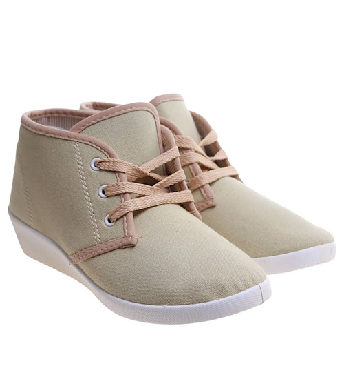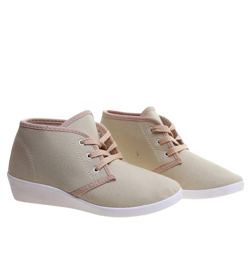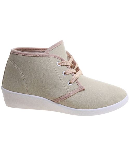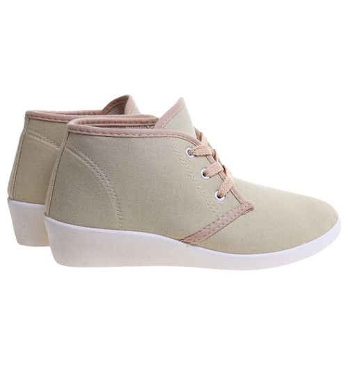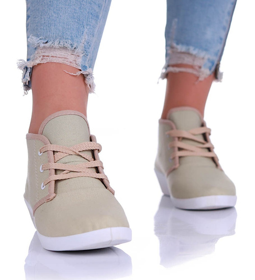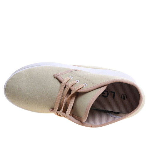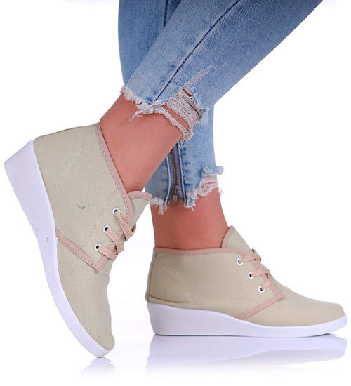 Sznurowane beżowe trampki na niskim koturnie /B1-3 11147 S193/