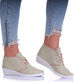 Te beżowe trampki to niezbędny element garderoby każdej miłośniczki wygody i modnego wyglądu. Wykonane z wysokiej jakości materiałów, zapewniają komfort przez cały dzień.
