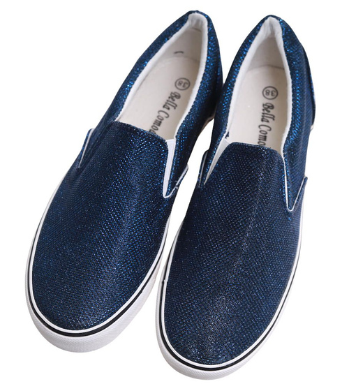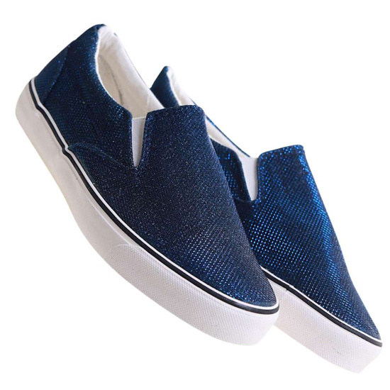 Odkryj buty damskie, które łączą w sobie nowoczesny design i pełen komfort noszenia. Te tenisówki wsuwane wykonane są z miękkiego materiału tekstylnego, dodatkowo podszytego delikatną tkaniną, dzięki czemu idealnie dopasowują się do stopy. Lśniący, granatowy wierzch nadaje im wyjątkowego charakteru, a wszyte gumy ściągające zapewniają wygodę przy zakładaniu i ściąganiu butów.