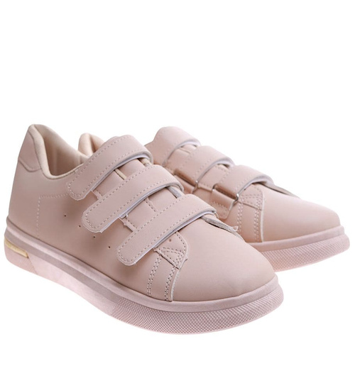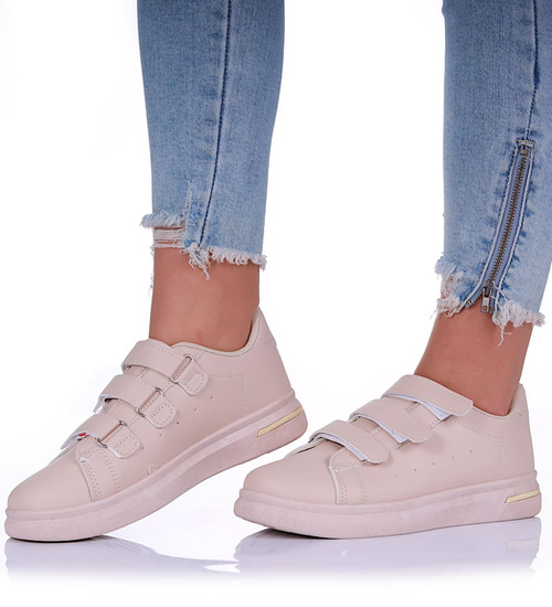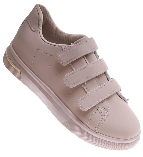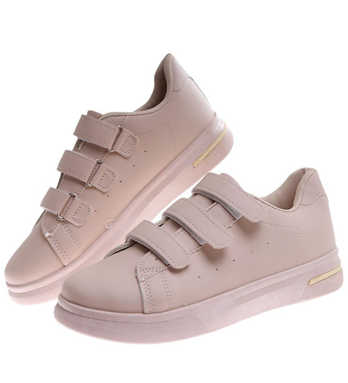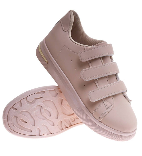 Beżowe damskie trampki na rzepy /D3-1 17221 G138/