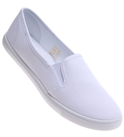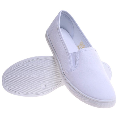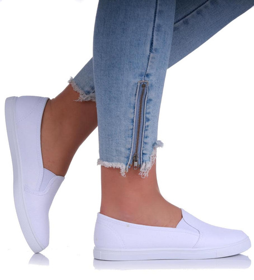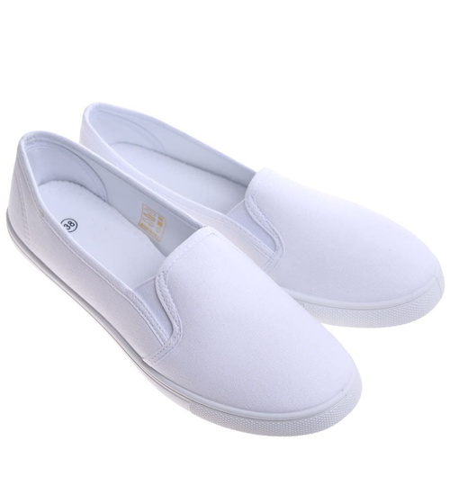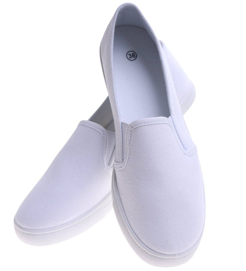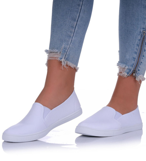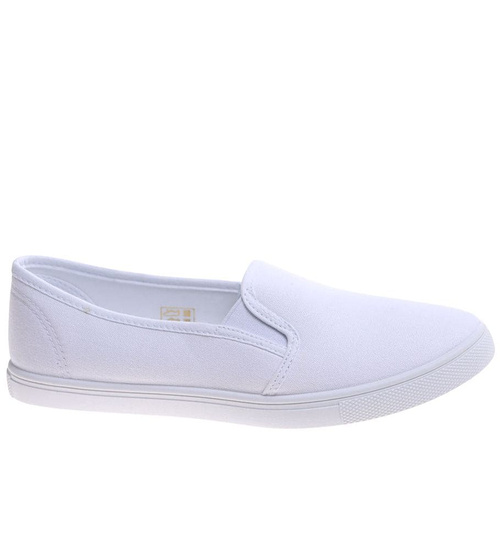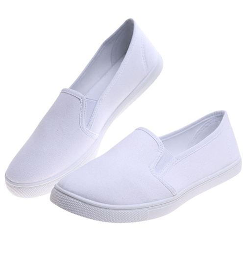 Białe wsuwane tenisówki damskie z tkaniny /E6-3 17230 T223/