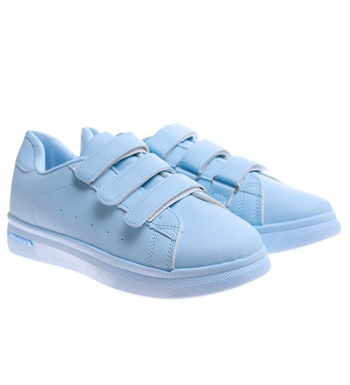 Błękitne damskie trampki na rzepy /D8-3 17222 G138/