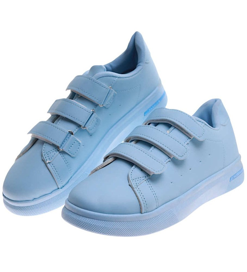Błękitne trampki świetnie sprawdzą się w różnych stylizacjach – od casualowych spacerów po sportowe aktywności. Trampki są lekkie, nie obciążają stóp. Zapięcie na rzepy pozwala idealnie dopasować je do Twojej stopy, zwiększając komfort użytkowania.