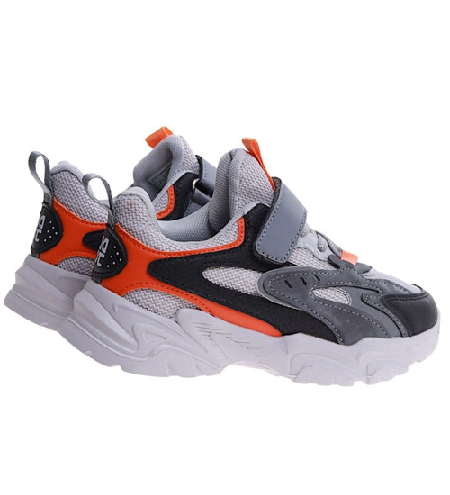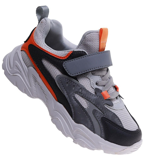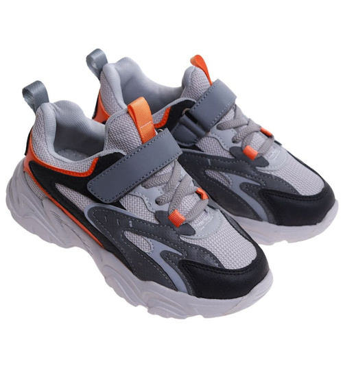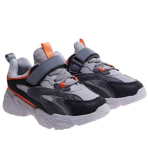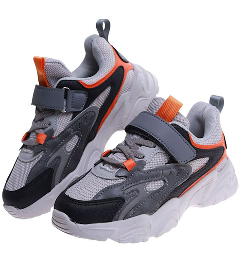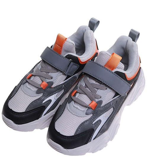 Szaro pomarańczowe chłopięce buty sportowe sneakersy /E1-3 17252 T289/