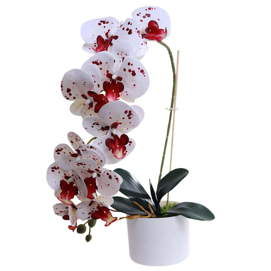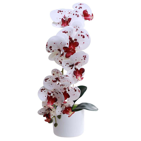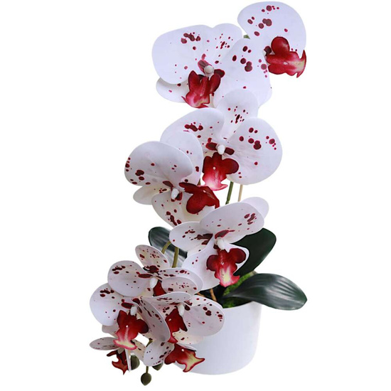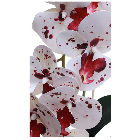 Sztuczny storczyk biały z bordowymi akcentami – subtelna elegancja i naturalne piękno w Twoim wnętrzu
