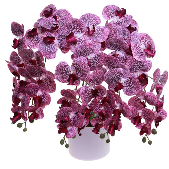 - ✔ Bogactwo kwiatów – aż 60 dużych, pięknie wykonanych fioletowych kwiatów na pięciu smukłych pędach.
