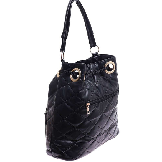 Duża czarna torebka damska z frędzlami /H TB654 S483/