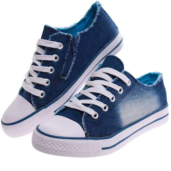 Casualowe granatowe trampki dziewczęce, które łączą w sobie komfort, styl i praktyczność. Wykonane z miękkiego, jeansowego materiału, zapewniają wygodę i swobodę ruchów, idealnie nadając się do codziennych przygód. Klasyczne sznurowanie uzupełnione dodatkowymi detalami w postaci suwaka gwarantuje nie tylko bezpieczne dopasowanie, ale również modny, niebanalny wygląd.