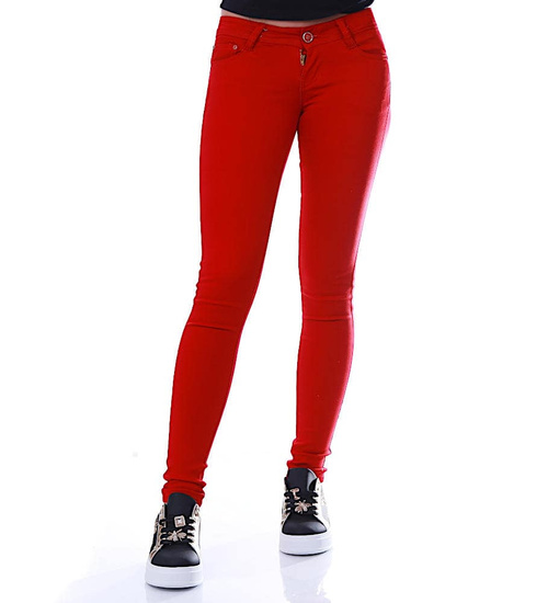 Postaw na komfort i modny wygląd z czerwonymi casualowymi spodniami damskimi, które doskonale sprawdzą się w codziennych stylizacjach. Wykonane z miękkiego materiału z przewagą bawełny, zapewniają wygodę noszenia i świetne dopasowanie do sylwetki.