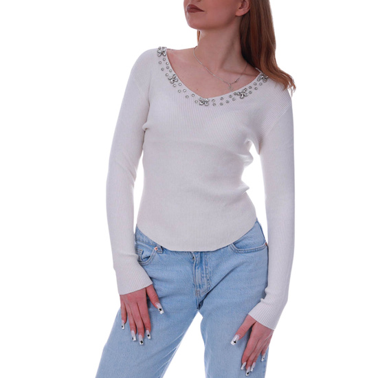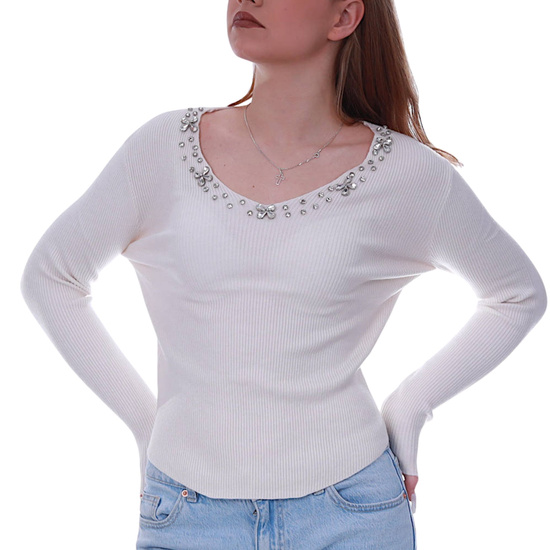 Beżowa bluzka damska z cyrkoniami /H UB899 S236/