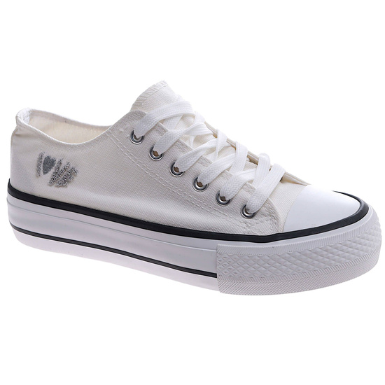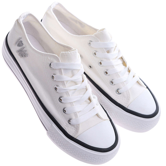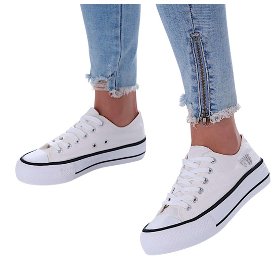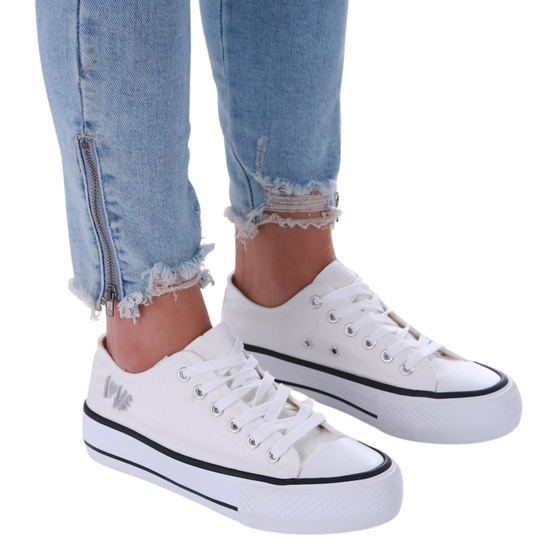 Białe wiązane trampki damskie na platformie /G8-3 17366 G188/