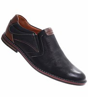 - Wsuwane czarne półbuty wykonane z materiału skóropodobnego w granatowym kolorze z brązowymi dodatkami.