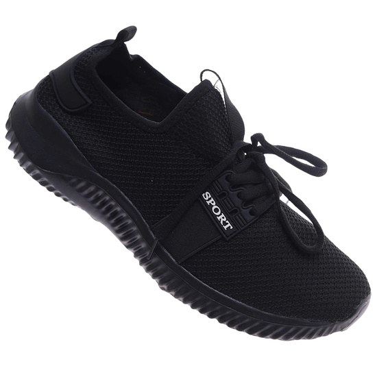 - Wkładane męskie buty sportowe wykonane z miękkiego materiału w czarnym kolorze.