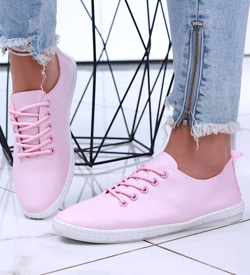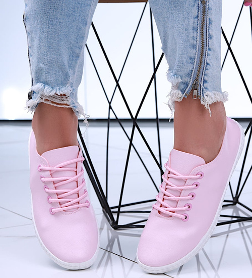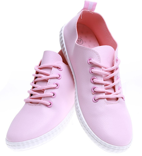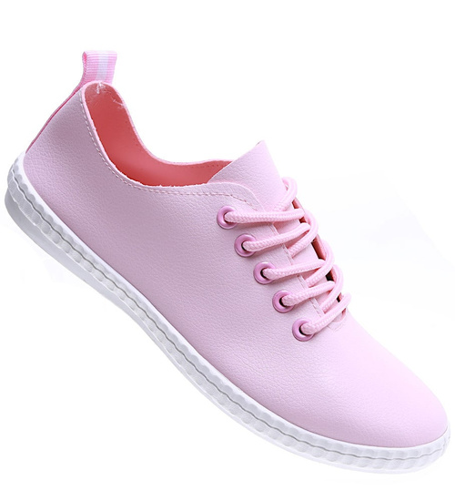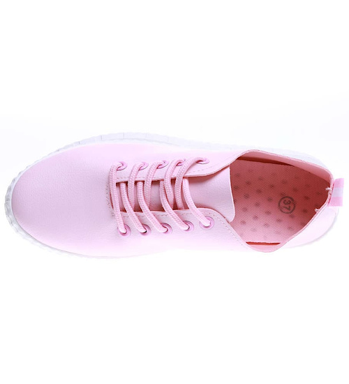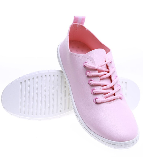Sznurowane różowe tenisówki damskie /D6-2 15812 T134/