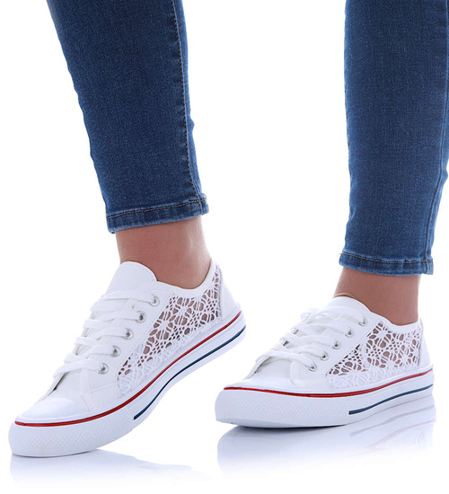 Koronkowe białe trampki damskie /G11-2 17412 T283/