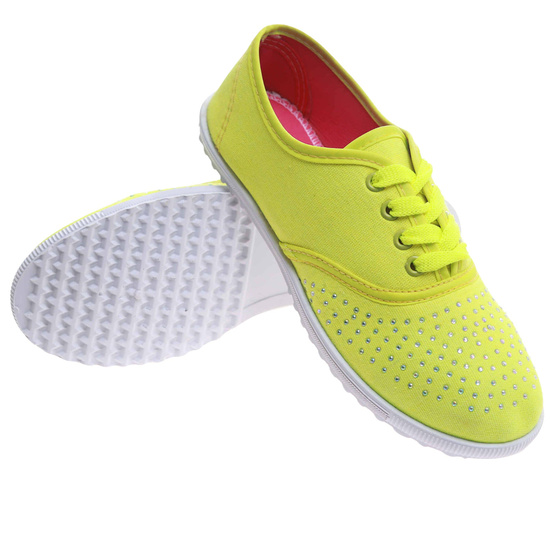 Żółte materiałowe tenisówki damskie /G9-2 17437 T086/
