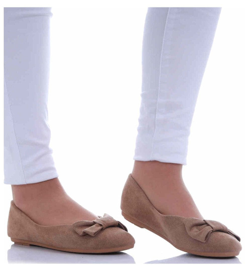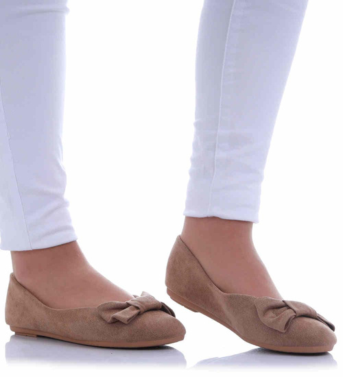 Zamszowe baleriny damskie z kokardą /G7-3 17503 G132/
