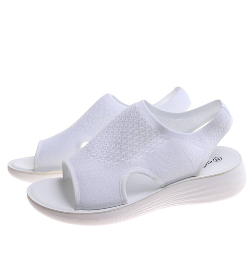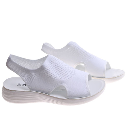 Białe elastyczne sandały na platformie /C6-2 H2 17512 W132/