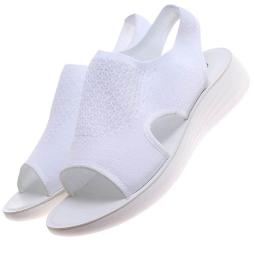 Wprowadź do swojej letniej garderoby lekkie i komfortowe sandały w białym kolorze, wykonane z elastycznego materiału. Dzięki temu idealnie dopasowują się do kształtu stóp, zapewniając wysoki poziom wygody nawet podczas długich dni.