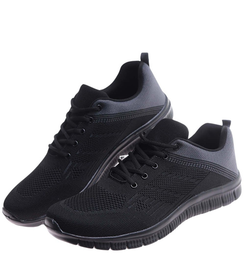 Sznurowane czarne męskie buty sportowe Duże rozmiary /B6-1 17467 S479/