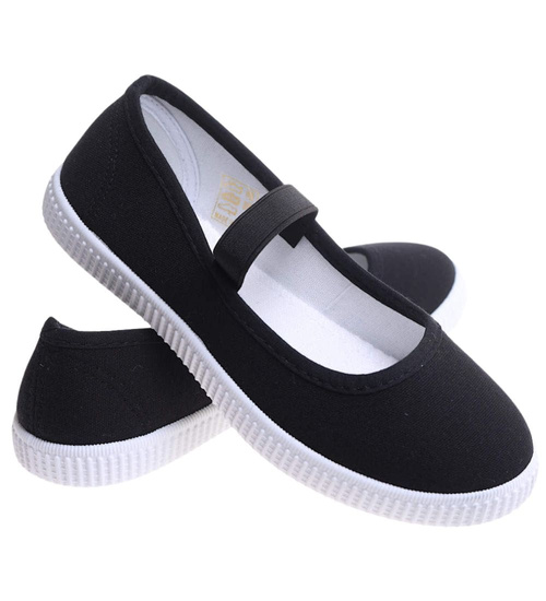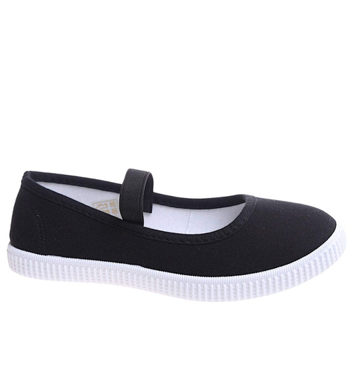 Wsuwane czarne dziewczęce tenisówki balerinki czeszki z paseczkiem /F1-2 17482 T127/