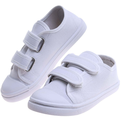Białe bawełniane tenisówki dziecięce na rzepy /C5-1 17547 Mx05-5/