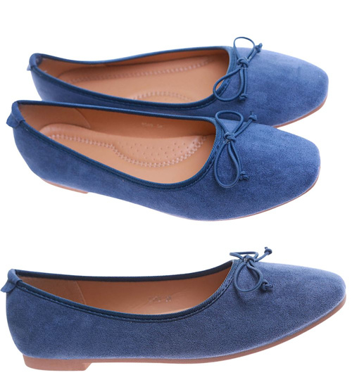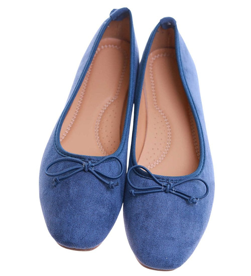 Zamszowe granatowe baleriny damskie z kokardą /E3-3 17541 G133/