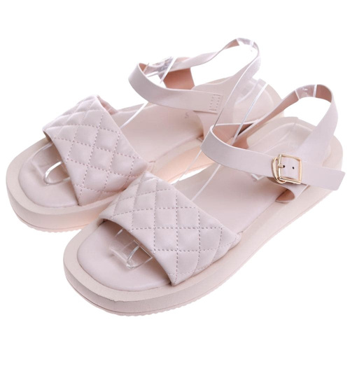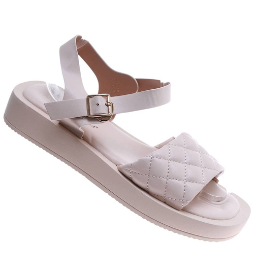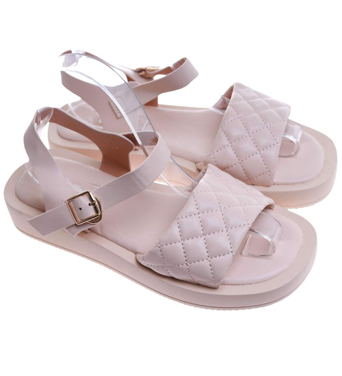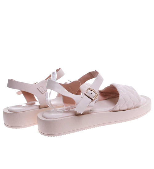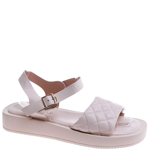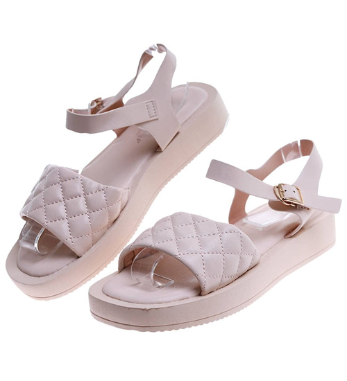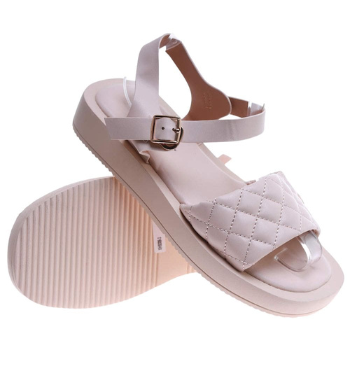 Beżowe sandały damskie na platformie /F4-3 17554 T130/