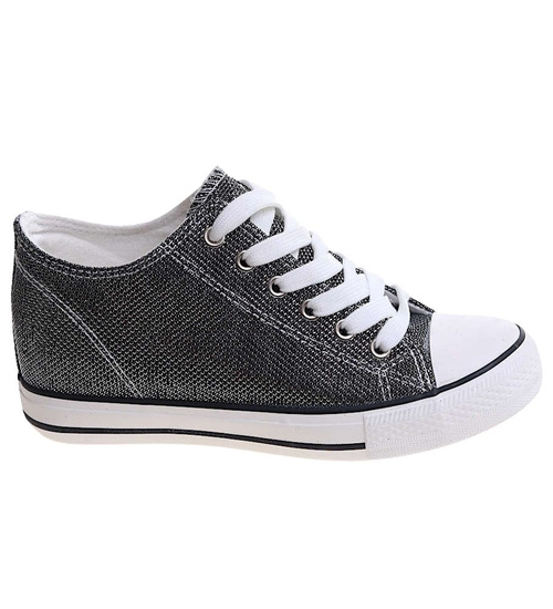 Czarne wiązane trampki sneakersy na niskim koturnie /A6-2 13519 T038/