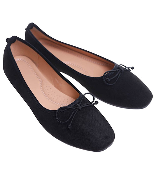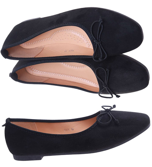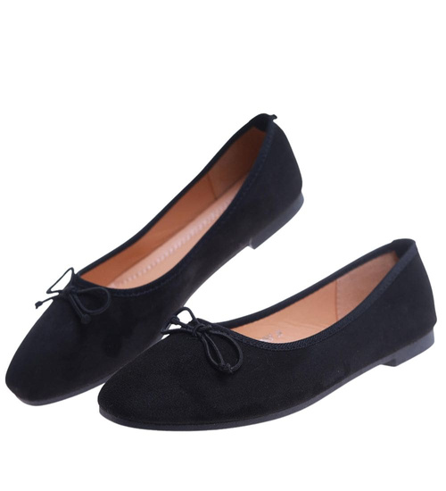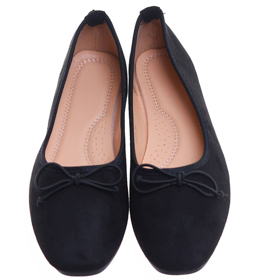 Zamszowe baleriny damskie z kokardą Czarne /G4-2 17560 G133/