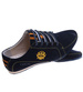 Sznurowane chłopięce półbuty w granatowym kolorze z żółtymi dodatkami to propozycja, która łączy w sobie styl, funkcjonalność i wygodę, idealna dla młodych odkrywców. Buty zostały uszyte zamszowego materiału.